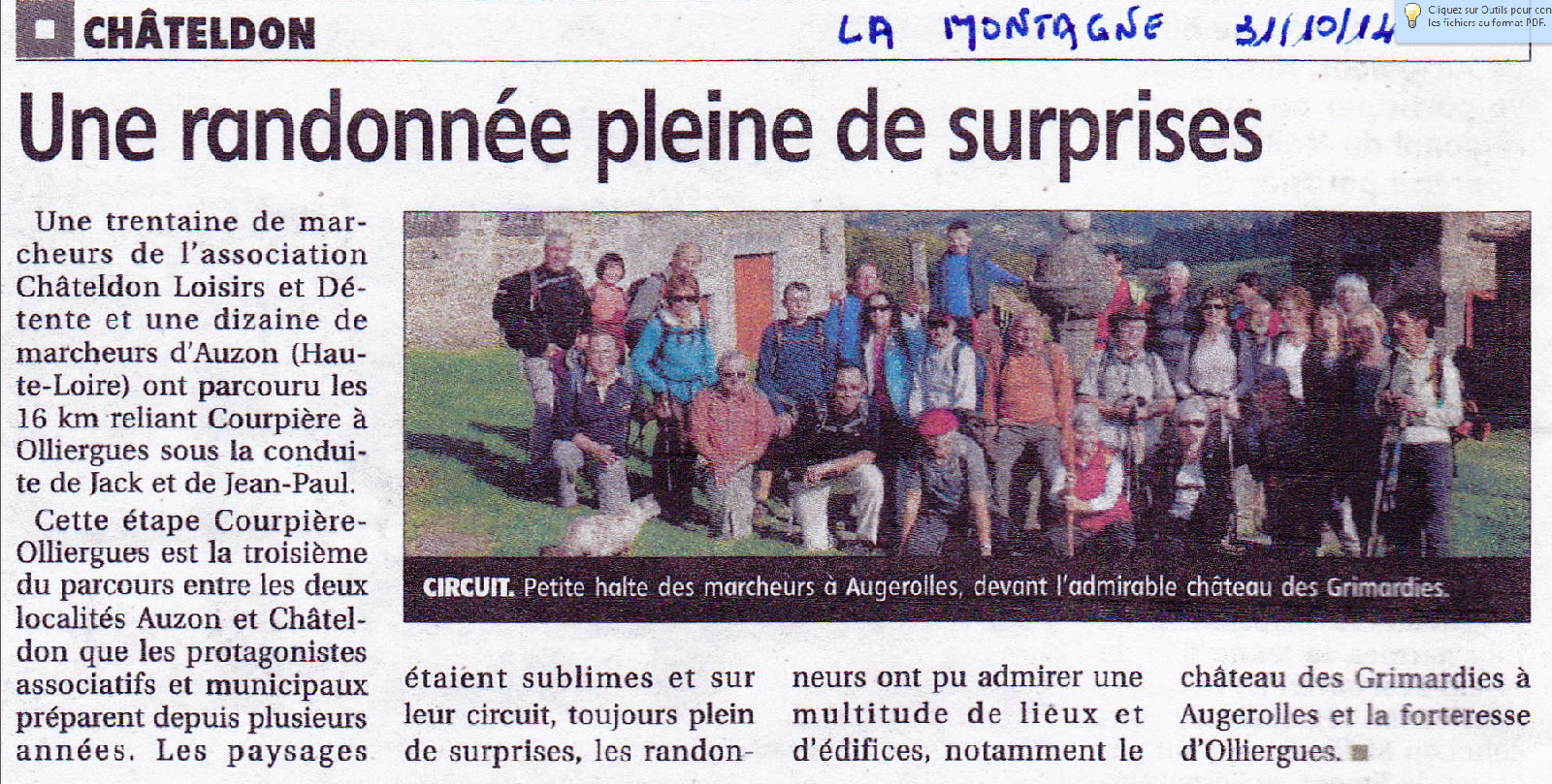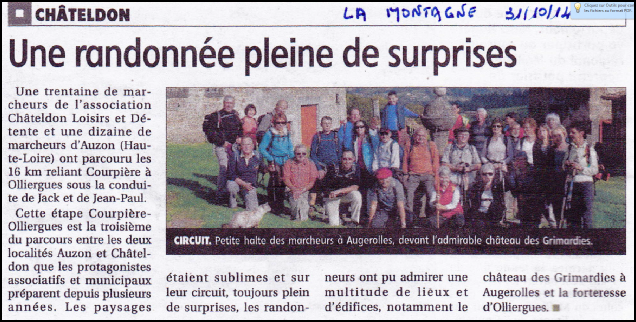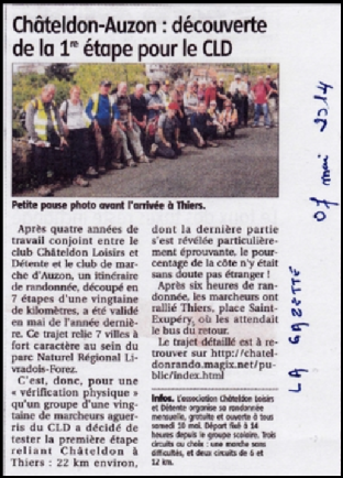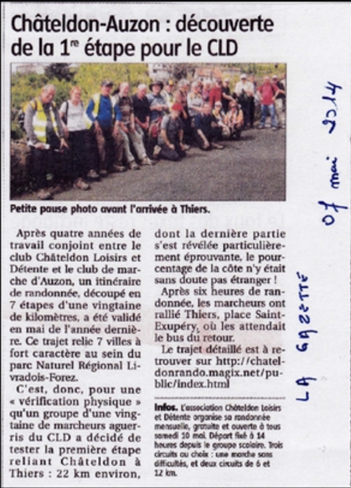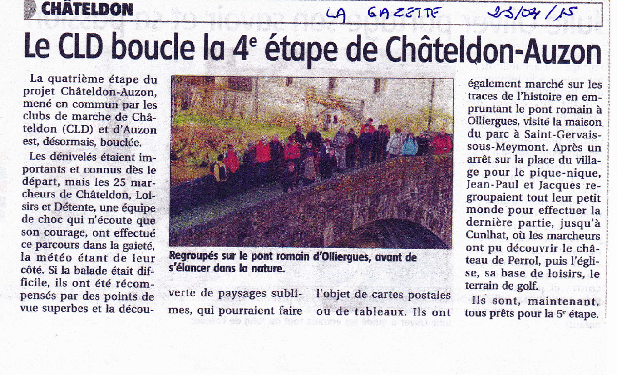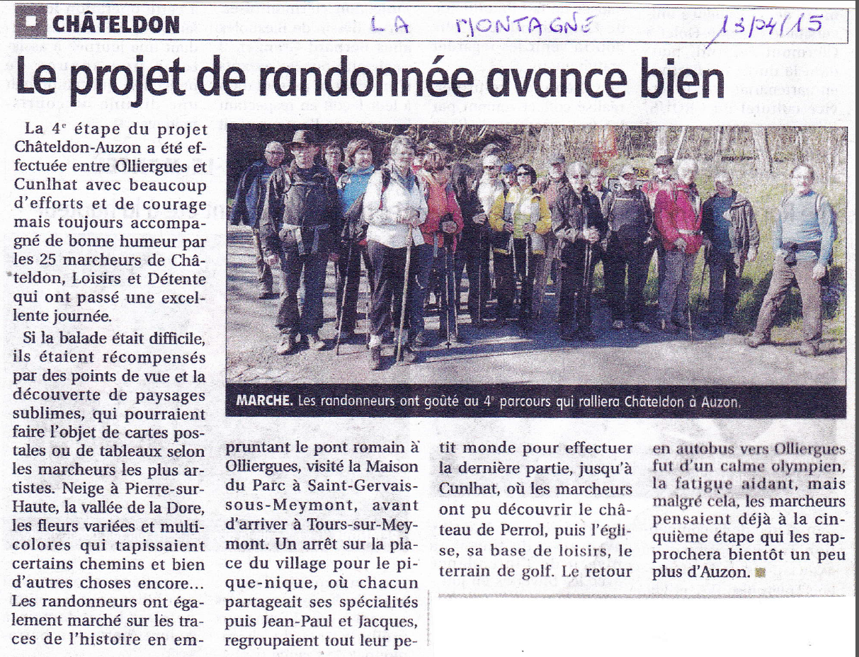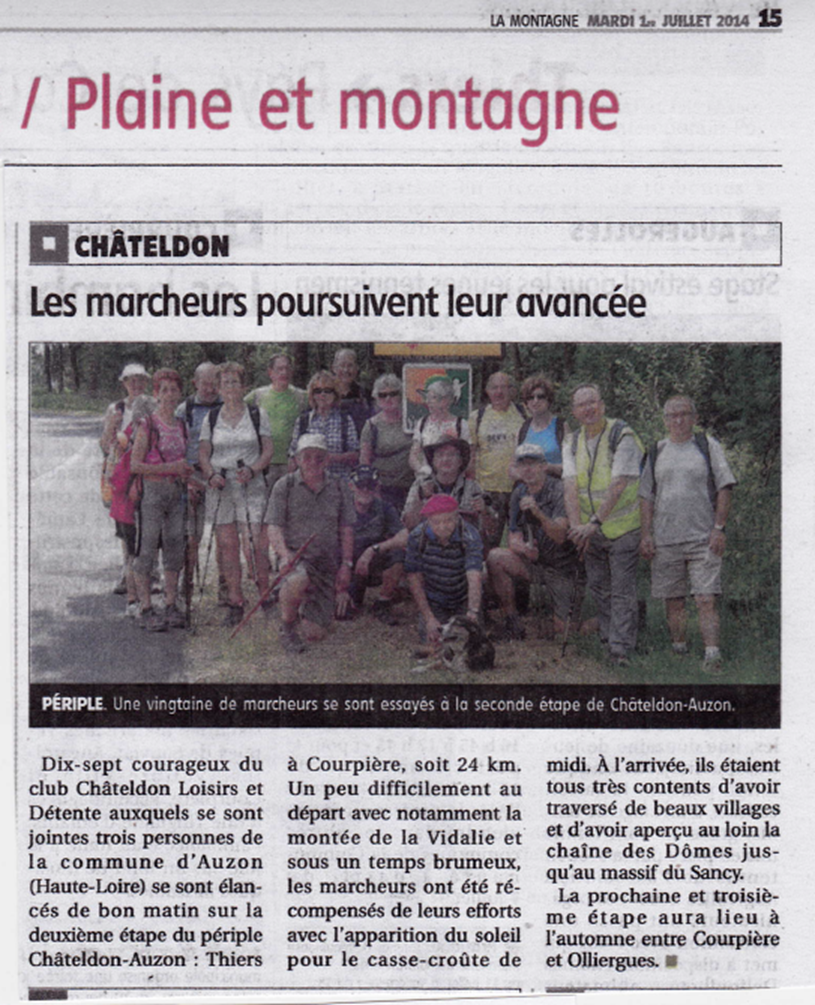23 personnes dont 11 personnes de CHATELDON ont relever le défi de la sixième étape, difficile d’après les premiers échos, reliant Vernet la Varenne à Sauxillanges