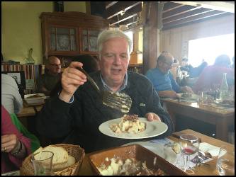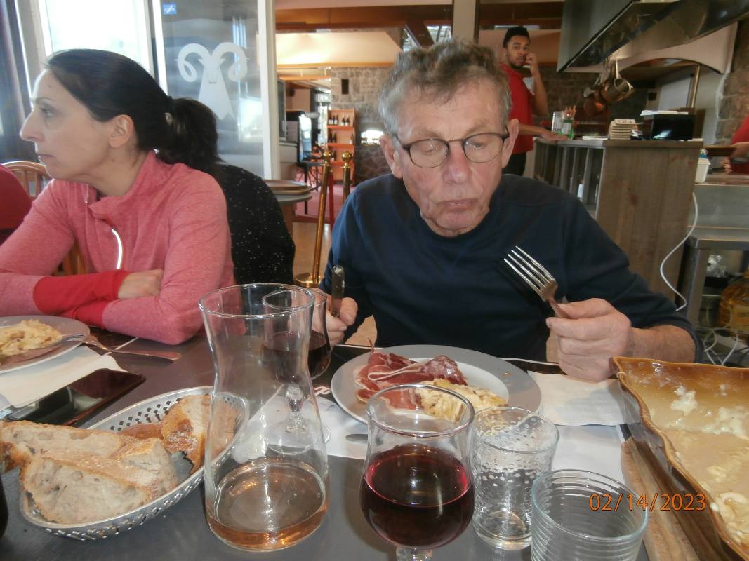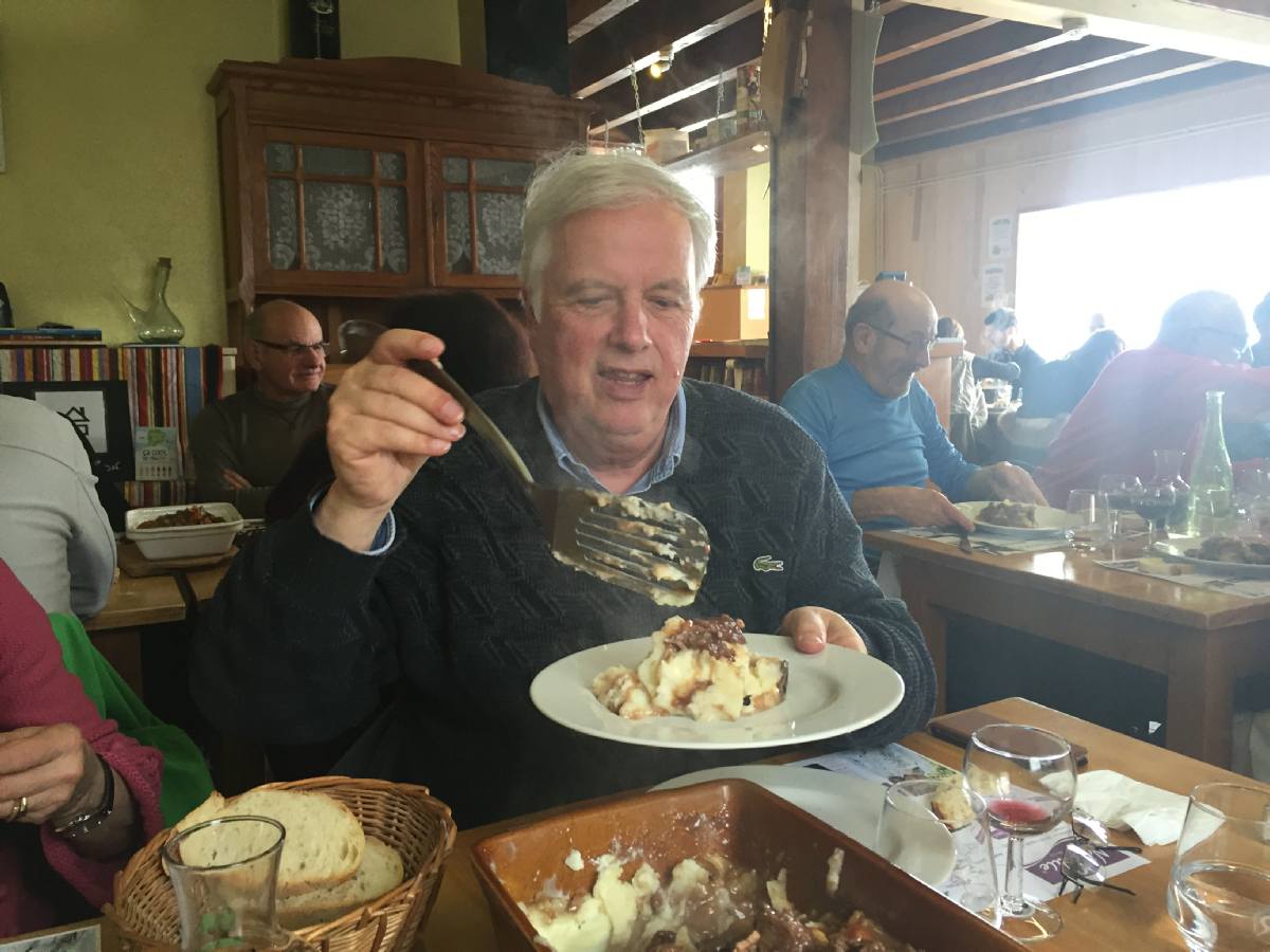 Le déjeuner du midi met tout le monde d’accord : C’est un repas pantagruélique. Le coq au vin, le chou farci et la glace à la myrtille sont un régal.