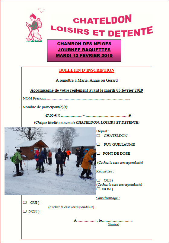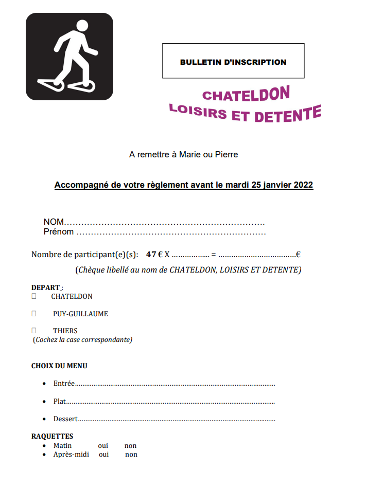 Voilà, un peu tard, je le reconnais, la fiche d'inscription pour la journée à la montagne dont je vous ai parlé pendant notre AG.