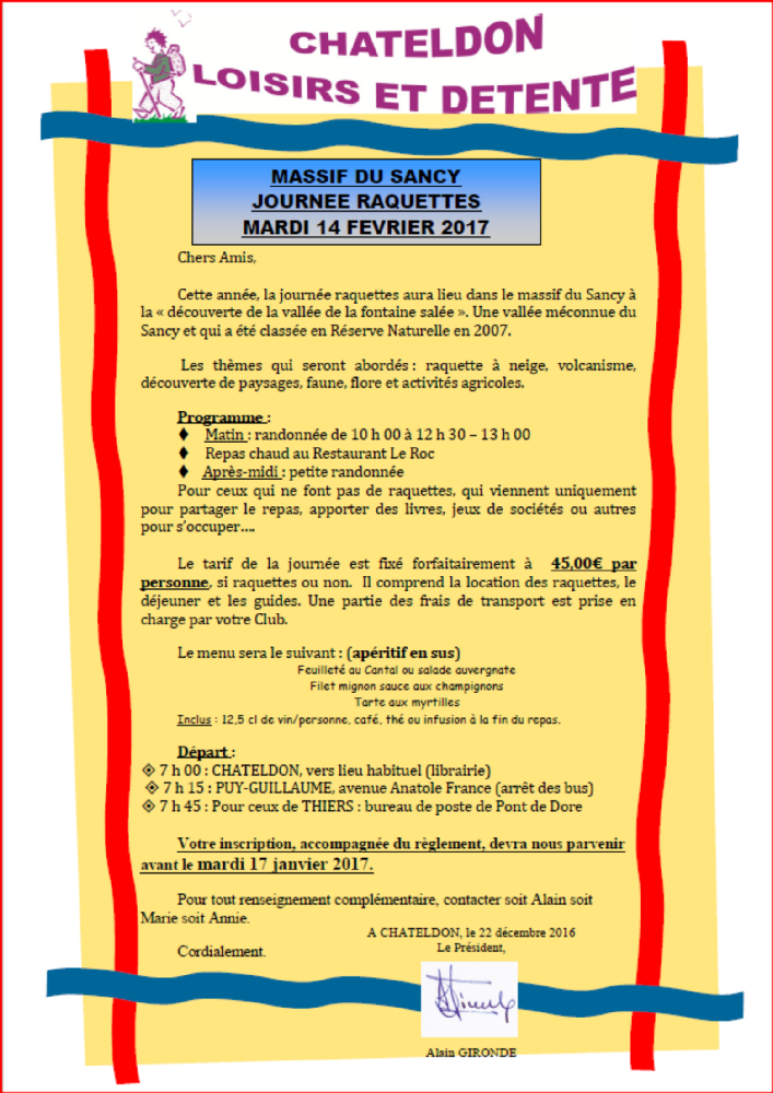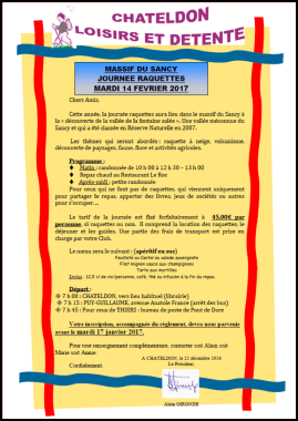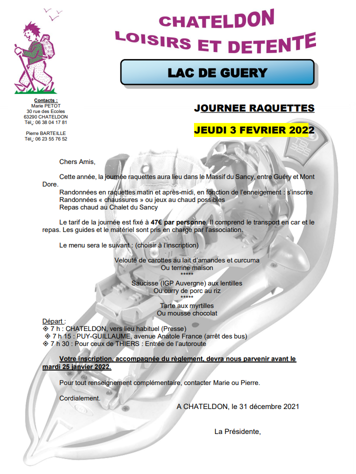 Cette année, la journée raquettes aura lieu dans le Massif du Sancy, entre Guéry et Mont-Dore le Jeudi 3 Février 2022.