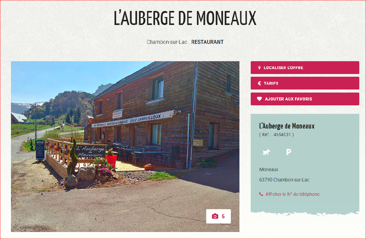 L’ Auberge de Moneaux à Chambon-sur-Lac