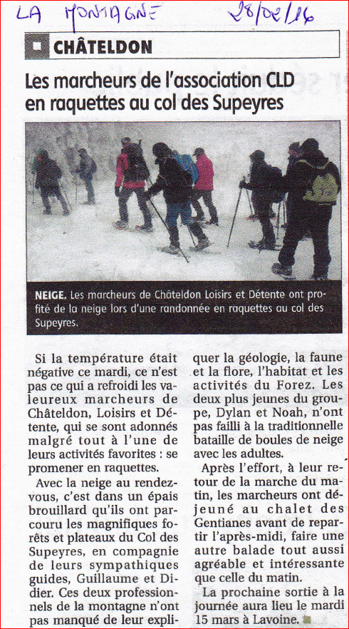 Je sais que vous avez bien apprécié la magnifique marche dans la neige, mardi dernier. Alors pourquoi ne pas venir à SUPERBESSE?