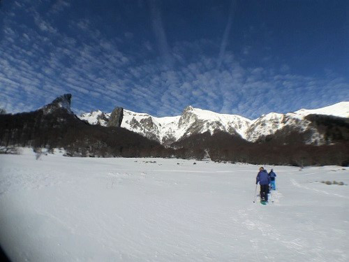 Nous assurons le retour en empruntant notre trace de l’aller. 2h déjà de randonnée en raquettes. Même l’infatigable Pierrot commence en avoir plein les bottes !