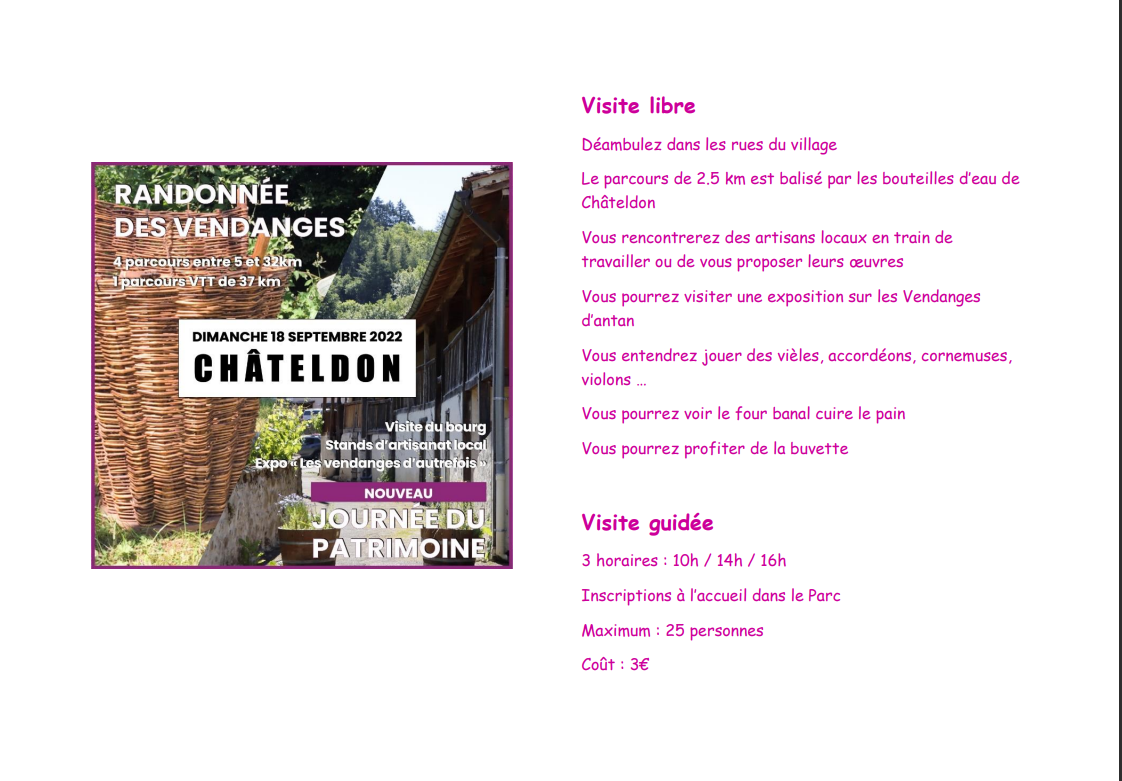 En parallèle avec notre Randonnée des Vendanges, à l’occasion des journées du patrimoine, nous avons organisé une visite guidée de notre bourg, visite conduite par notre présidente Marie Petot.
