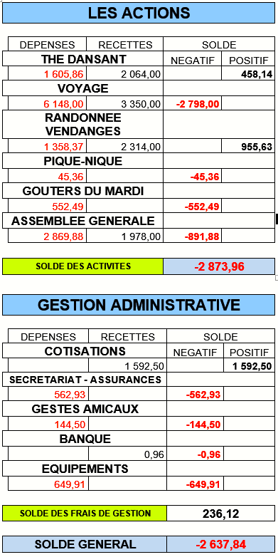 Les comptes présentés par le Trésorier font apparaître une perte de 2637.84€.