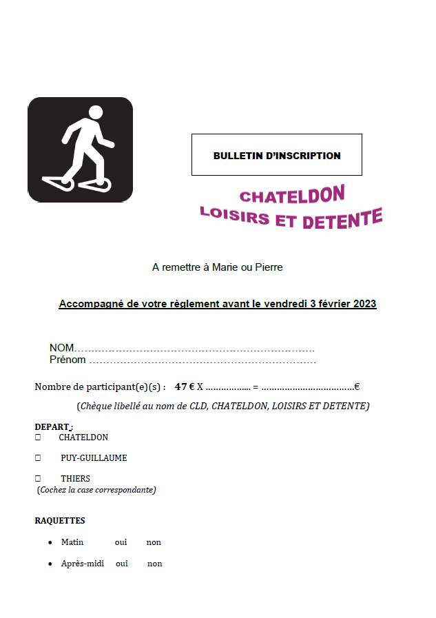 Voilà, un peu tard, je le reconnais, la fiche d'inscription pour la journée à la montagne dont je vous ai parlé pendant notre AG.