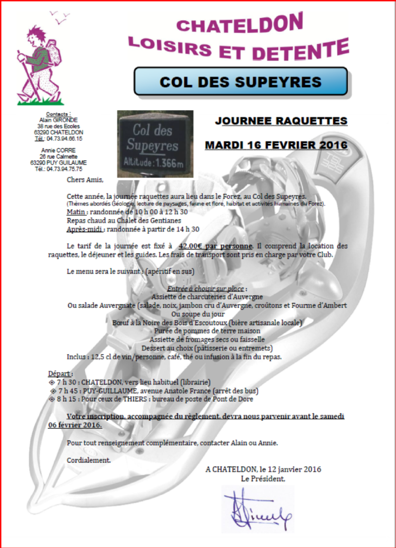 Je sais que vous avez bien apprécié la magnifique marche dans la neige, mardi dernier. Alors pourquoi ne pas venir à SUPERBESSE?