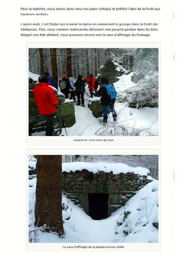 La journée raquettes au Lac du Guery (le matin) et au Mont-Dore (l’A-M), c’est très bien déroulée. Nous étions environs 28 raquetteuses et raquetteurs (malheureusement sans notre Présidente confinée chez elle par la Covid), plus nos deux guide, à affronter une neige relativement abondante mais avec un beau temps, frais et ensoleillé.