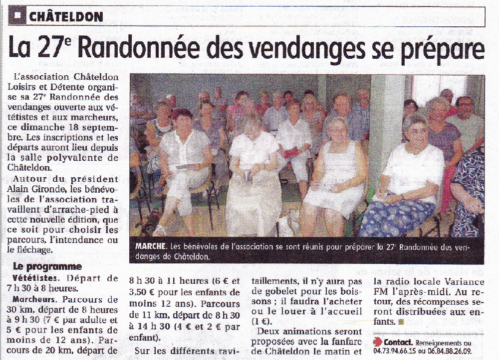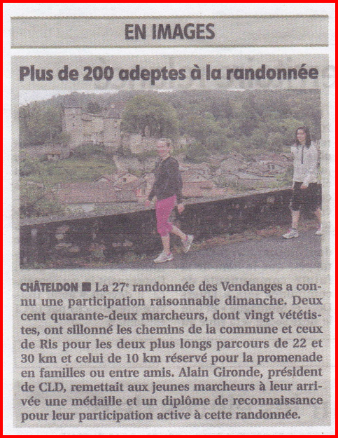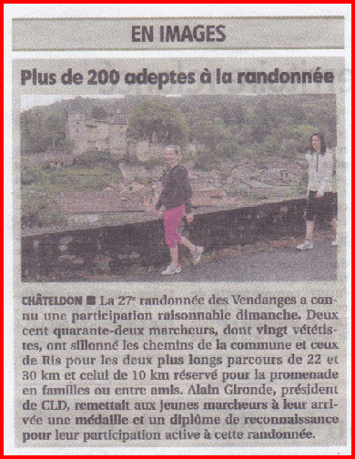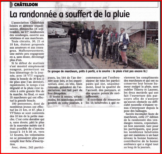 Il faut aussi associer à cette bonne humeur générale la « Musique de Châteldon » qui malgré la pluie nous a fait l'animation au premier et au deuxième ravitaillement ainsi que « Variance FM » qui a fait l’animation à l'accueil dans la salle polyvalente.