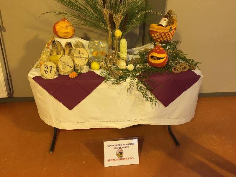 Soulignons aussi l’excellent travail de notre artiste maison Brigitte GIBBES qui a exposé une nouvelle sculpture sur légumes pleine d’imaginations et qui a fait l’admiration de tous les participants et des autres.